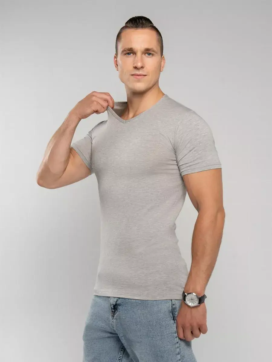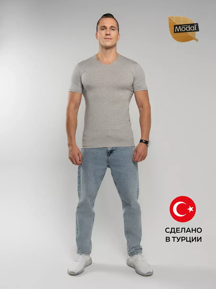 Мужская классическая футболка из модала с хлопком облегающего силуэта с V-образной горловиной. Обладает благородным внешним видом и повышенной прочностью. Модал- экологичная тань, не содержит в составе токсичных компонентов. По гигроскопичности ткань в полтора раза превышает хлопок. Изделия из модала хорошо пропускают воздух, позволяя коже дышать. Футболка не линяет, не выцветает, практически не мнется. Благодаря отсутствию боковых швов, изделие устойчиво к деформациям в результате многочисленных стирок.