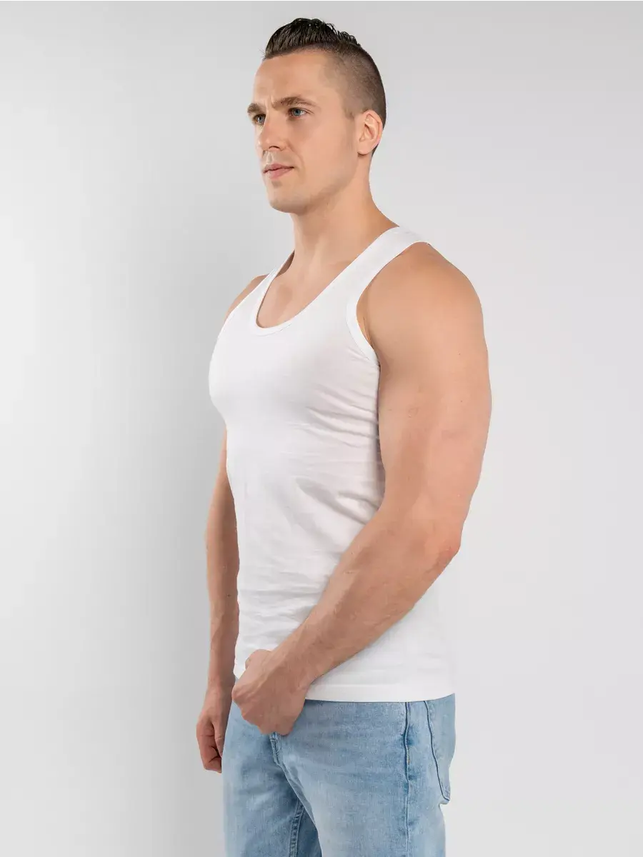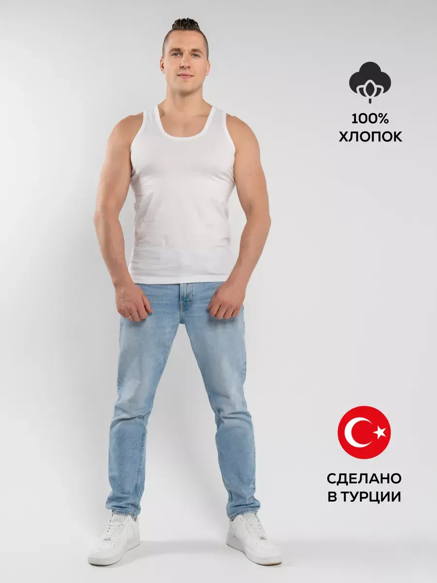 Классическая мужская майка 100% хлопок из гладкого трикотажного полотна супрем свободного силуэта. Обладает благородным внешним видом и повышенной прочностью. Изделие не имеет боковых швов, за счет чего не деформируется в результате многочисленных стирок. Полотно отличается хорошей воздухопроницаемостью, мягкое и приятное на ощупь.