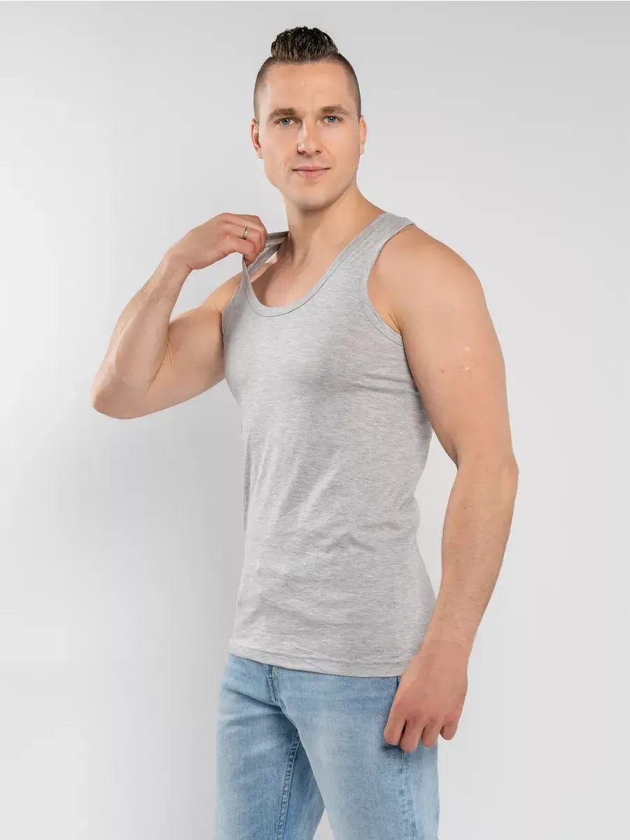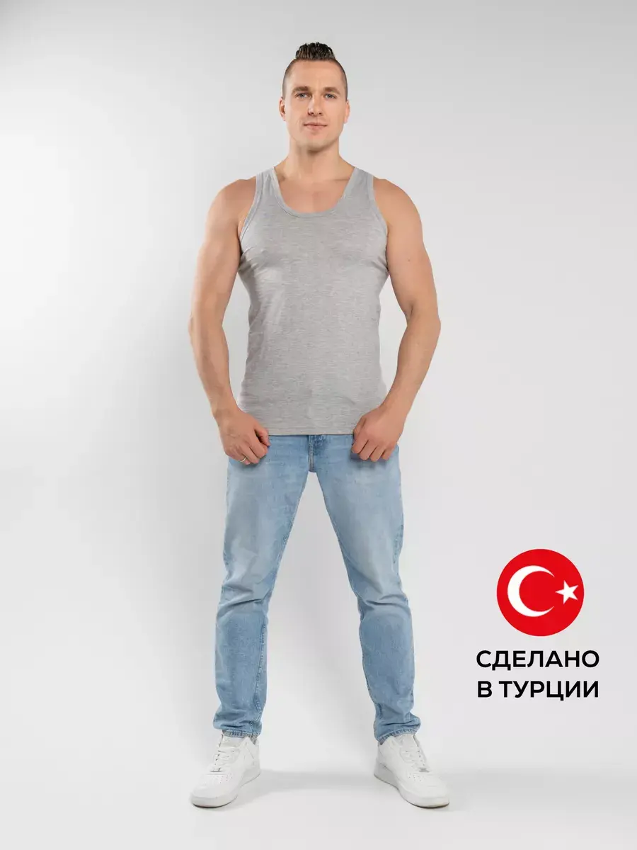 Классическая мужская майка из хлопка с добавлением полиамида из гладкого трикотажного полотна супрем свободного силуэта. Обладает благородным внешним видом и повышенной прочностью. Изделие не имеет боковых швов, за счет чего не деформируется в результате многочисленных стирок. Полотно отличается хорошей воздухопроницаемостью, мягкое и приятное на ощупь.