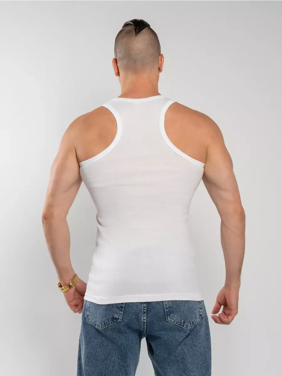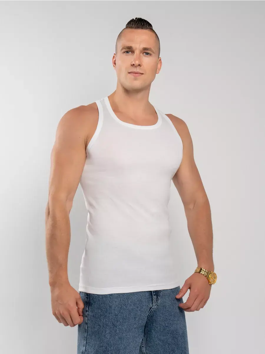 Мужская майка борцовка 100% хлопок из трикотажного полотна рибана (мелкий рубчик) облегающего силуэта. Обладает благородным внешним видом, повышенной прочностью, повторяет контуры тела, не ограничивая при этом подвижности. Изделие не имеет боковых швов, за счет чего не деформируется в результате многочисленных стирок. Полотно отличается хорошей воздухопроницаемостью, мягкое и приятное на ощупь. Майка великолепна для повседневной носки и обеспечивает комфорт в течение всего дня. Борцовка идеально подойдет для дома или пляжа, для спортивных или фитнес тренировок. Также это плотное удлиненное изделие очень востребовано в холодное время года. Данная майка - незаменимая вещь в гардеробе каждого мужчины. Она обеспечивает комфорт, стиль и простоту в одном флаконе. Не упустите возможность приобрести эту универсальную вещь и наслаждаться ее преимуществами каждый день.