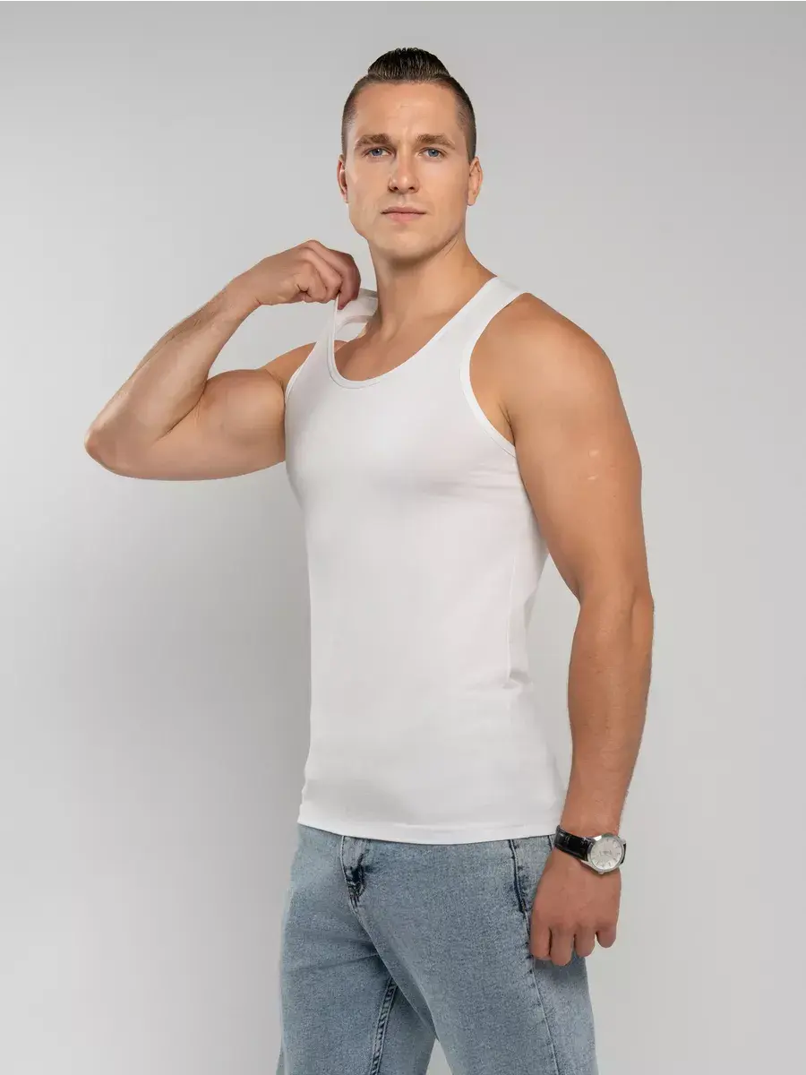 Мужская классическая майка из модала с хлопком. Обладает благородным внешним видом и повышенной прочностью. Модал- экологичная тань, не содержит в составе токсичных компонентов. По гигроскопичности ткань в полтора раза превышает хлопок. Изделия из модала хорошо пропускают воздух, позволяя коже дышать. Майка не линяет, не выцветает, практически не мнется. Благодаря отсутствию боковых швов, изделие устойчиво к деформациям в результате многочисленных стирок. За счет добавления в состав полотна эластана, майка не растягивается и в процессе носки сохраняет свою форму.