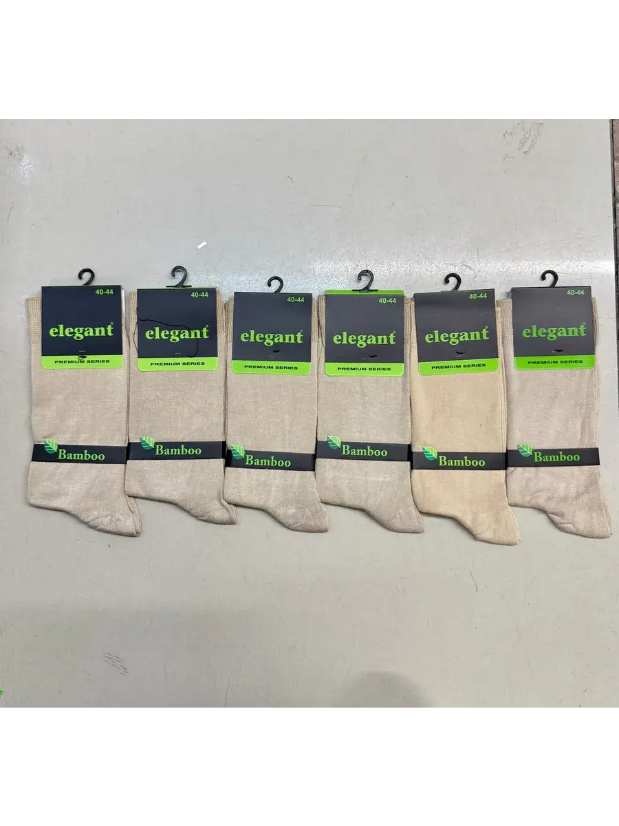 Комплект из 6 пар удлиненных ароматизированных мужских носков бежевого цвета. Бамбуковое трикотажное полотно, из которого произведены данные носки, - это экологичная тань, которая не содержит в составе токсичных компонентов. Материал обладает антимикробным действием. Бамбуковое полотно мягче хлопка и даже кашемира. Изделия из бамбука хорошо пропускают воздух, позволяя коже дышать. Мысок и пятка дополнительно усилены, широкая мягкая резинка не перетягивает голень, обеспечивая комфортную носку. Обращаем Ваше внимание на то, что длина носков выше стандартной.