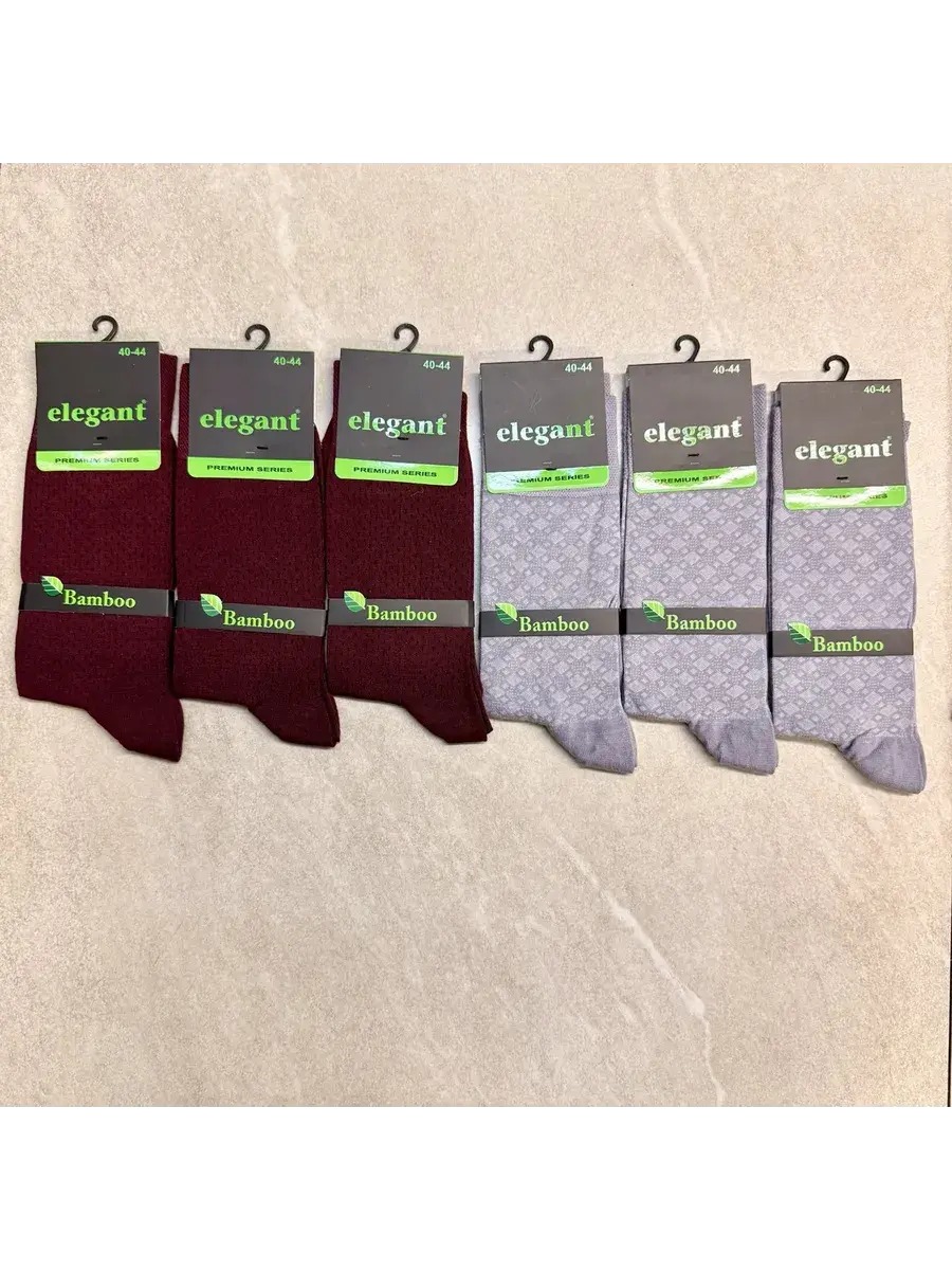 Комплект из шести пар удлиненных ароматизированных мужских носков серого и бордового цветов. Бамбуковое трикотажное полотно, из которого произведены данные носки, - это экологичная тань, которая не содержит в составе токсичных компонентов. Материал обладает антимикробным действием. Бамбуковое полотно мягче хлопка и даже кашемира. Изделия из бамбука хорошо пропускают воздух, позволяя коже дышать. Мысок и пятка дополнительно усилены, широкая мягкая резинка не перетягивает голень, обеспечивая комфортную носку. Обращаем Ваше внимание на то, что длина носков выше стандартной.