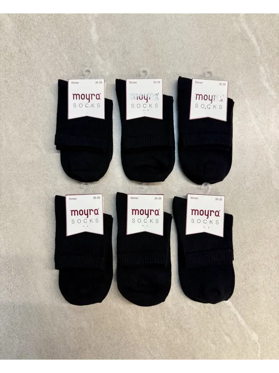 Комплект из 6 пар женских носков из высококачественного хлопка черного цвета. Материал обладает антимикробным действием. Хлопковое полотно очень мягкое и комфортное на ощупь. Изделие хорошо пропускает воздух, позволяя коже дышать. Мысок и пятка дополнительно усилены. Носки прекрасно подходят под кроссовки и спортивную обувь.