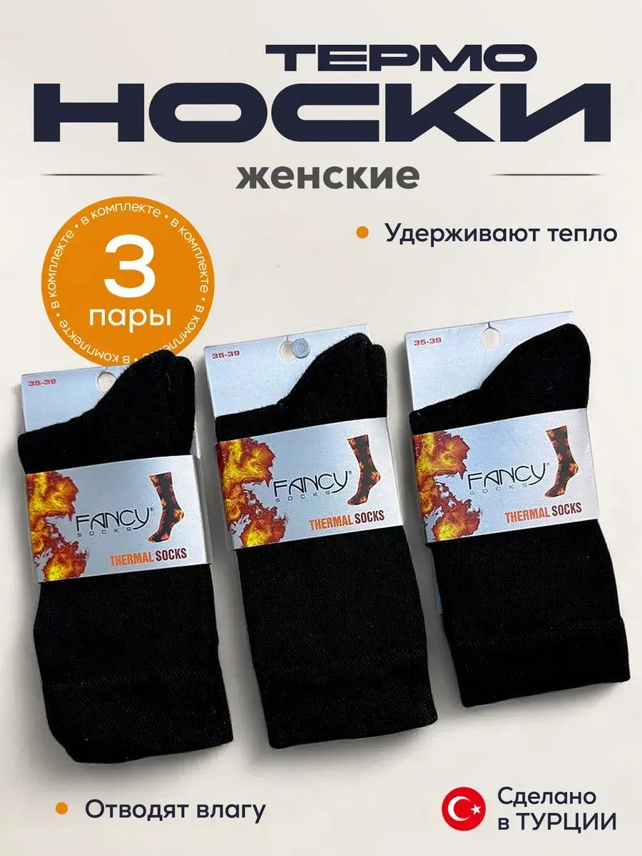 Комплект женских термоносков из 3 пар черного цвета. Выполнены из термоволокна с добавлением эластана. Необходимы спортсменам, любителям зимней рыбалки, турпоходов - всем, кто ведет активный образ жизни. Также носки прекрасно подойдут для долгих прогулок на свежем воздухе в морозную погоду. Преимущество термоносков в том, что они регулируют теплообмен. Обычная хлопковая или шерстяная ткань поглощает влагу с поверхности кожи, и поэтому через некоторое время ноги начинают замерзать. Термоволокно же сохраняет тепло, вырабатываемое телом, и при этом отводит лишнюю влагу, что снижает до минимума риск переохладиться или перегреться. Термоволокно обладает также антибактериальными свойствами, не создает условий для размножения микроорганизмов, предупреждая появление неприятных запахов. Термоноски приятны к телу, не вызывают раздражения, легко стираются и сушатся.