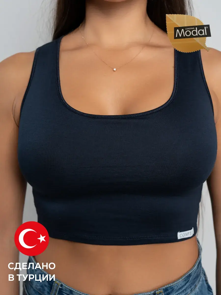 Бесшовный топ с мягкими чашками - идеальный выбор для комфорта и уверенности в себе. Топ изготовлен из модала с хлопком. Модал- экологичная тань, не содержит в составе токсичных компонентов. По гигроскопичности ткань в полтора раза превышает хлопок. Изделия из модала хорошо пропускают воздух, позволяя коже дышать. Эластан, входящий в состав полотна, обеспечивает долговечность изделию и сохранение его первоначального вида после многочисленных стирок. Топ мягко облегает фигуру , не сковывая движений. Универсальный дизайн позволяет носить его под любую одежду, топ можно использовать в качестве самостоятельной единицы одежды, также он идеально подходит для занятий спортом. Мягкие чашки позволяют идеально оформить Ваше декольте.